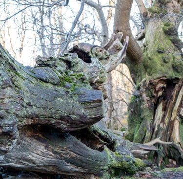 Whether small and shrubby or big and gnarly, in winter trees appear more open and honest than the opulence of spring and summer permits. Their ancient trunks and skeletal branches tell stories of times of hardship and times of plenty and times of change but it’s what we don’t see that is truly remarkable. They care for each other, for example, through networks of connected roots and fungi that share nutrients with neighbours who are deficient, diseased or dying. Sometimes even stumps seem to thrive as a result, take a closer look and see. They communicate with each other too; when attacked by pests, trees emit a scent to warn others of the impending danger. Those downwind then pump toxins to their leaves which said pests find unpalatable and even deadly. They are courteous. There is only so much space in a forest and the touch of another tree’s branch gently signals 'thus far and no further'. The young saplings too must be patient as they wait, sometimes for decades, for a space to open in the canopy. Then and only then can they grow and fill the void left by the felled or fallen elders.